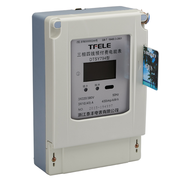 DTSY794型电子式三相四线预付费电能表采用微电子技术计量电能, 产品符合GB/T18460—2001们C卡预付费售电系统》。电能表采用全屏蔽、 全密封结构,用先进的单片机处理系统进行数据的采集、处理和保存,具 有良好的抗电磁干扰、低自耗节电、高精度、不需校表、防窃电、高过载、 长寿命等特点。同时为用户提供功能齐全的售电和管理软件系统。