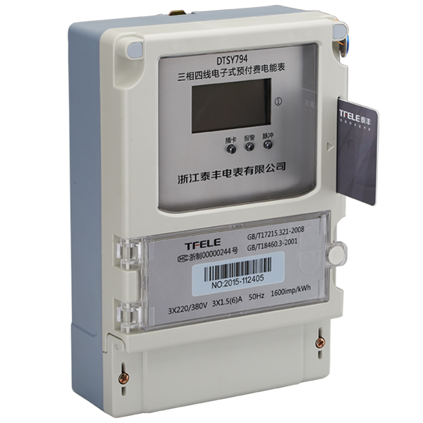 DTSY794型电子式三相四线预付费电能表采用微电子技术计量电能, 产品符合GB/T18460—2001们C卡预付费售电系统》。电能表采用全屏蔽、 全密封结构,用先进的单片机处理系统进行数据的采集、处理和保存,具 有良好的抗电磁干扰、低自耗节电、高精度、不需校表、防窃电、高过载、 长寿命等特点。同时为用户提供功能齐全的售电和管理软件系统。